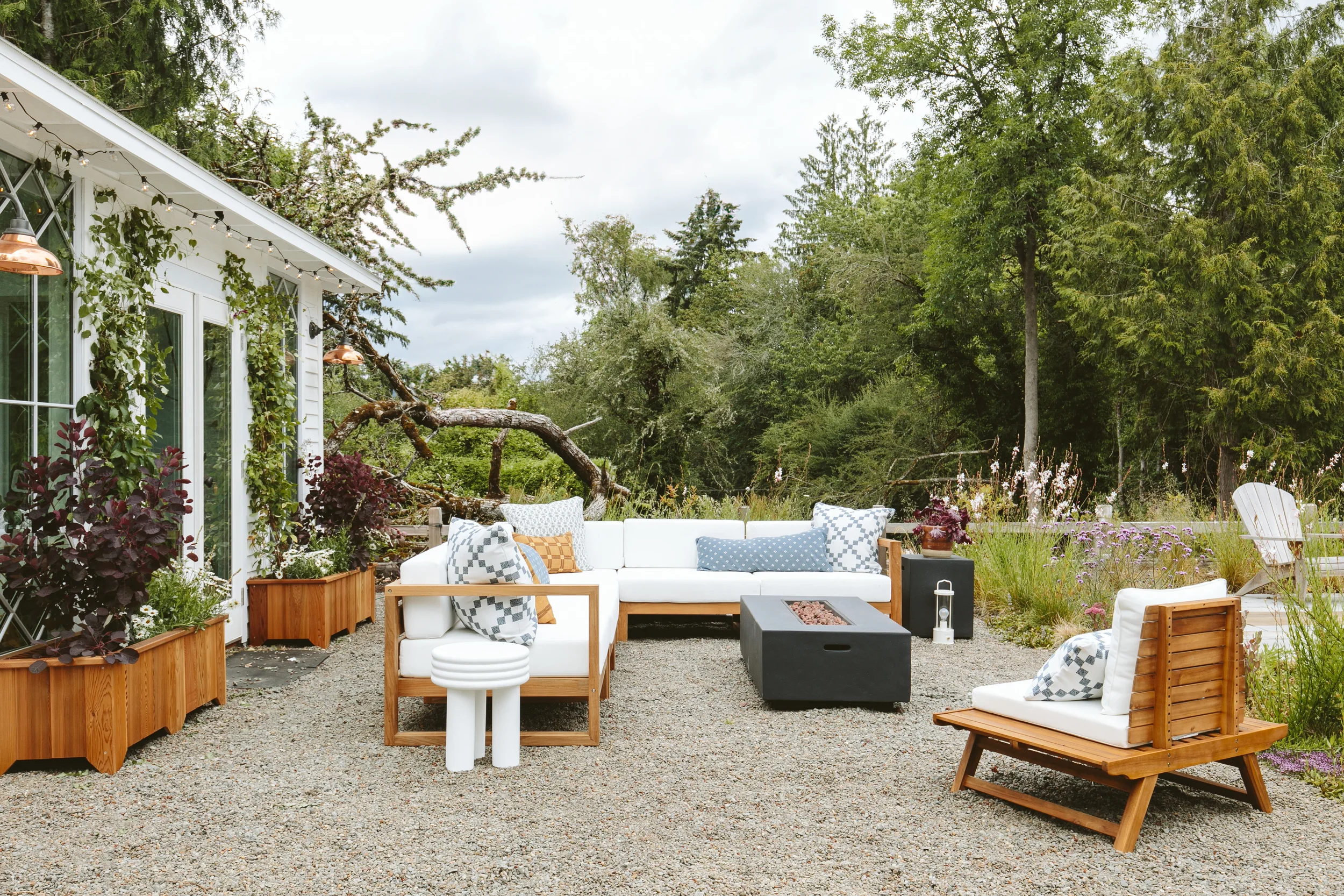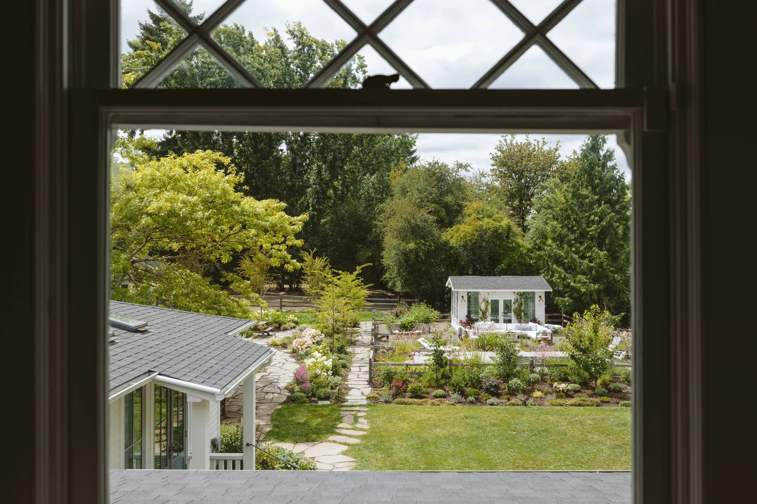 Situated on three acres outside of Portland, Oregon, this magical property is the residence, studio and farm of the acclaimed stylist Emily Henderson and her young family. Our work together, phased over four years, covered masterplanning for the property at large, cottage style perennial gardens, native restoration of the woodland understory, alpaca and pig paddocks, and a central pool with vegetable garden.
